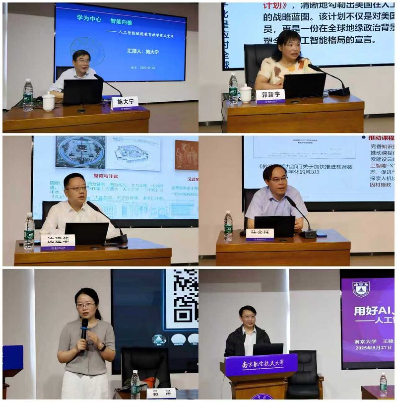 本次培训特邀多位在人工智能与教育融合领域具有深厚造诣的专家学者授课。必威BETWAY中国官方网站施大宁教授以“学为中心-智能向善”为主题,深入阐释了人工智能赋能教育教学模式变革的路径与思考;江苏省教育厅高教处郭新宇调研员从政策层面出发,系统介绍了人工智能赋能高等教育的探索与实践;南京邮电大学沈建华教授结合学校办学定位,分享了建设人工智能通识课程的宝贵经验;东南大学陆金钰教授对未来实验教学模式改革提出了前瞻性思考;必威BETWAY中国官方网站易洋副研究员探讨了AI赋能教师能力提升的有效路径;南京大学王骏教授则分享了南京大学在人工智能融合教育方面的创新实践。
